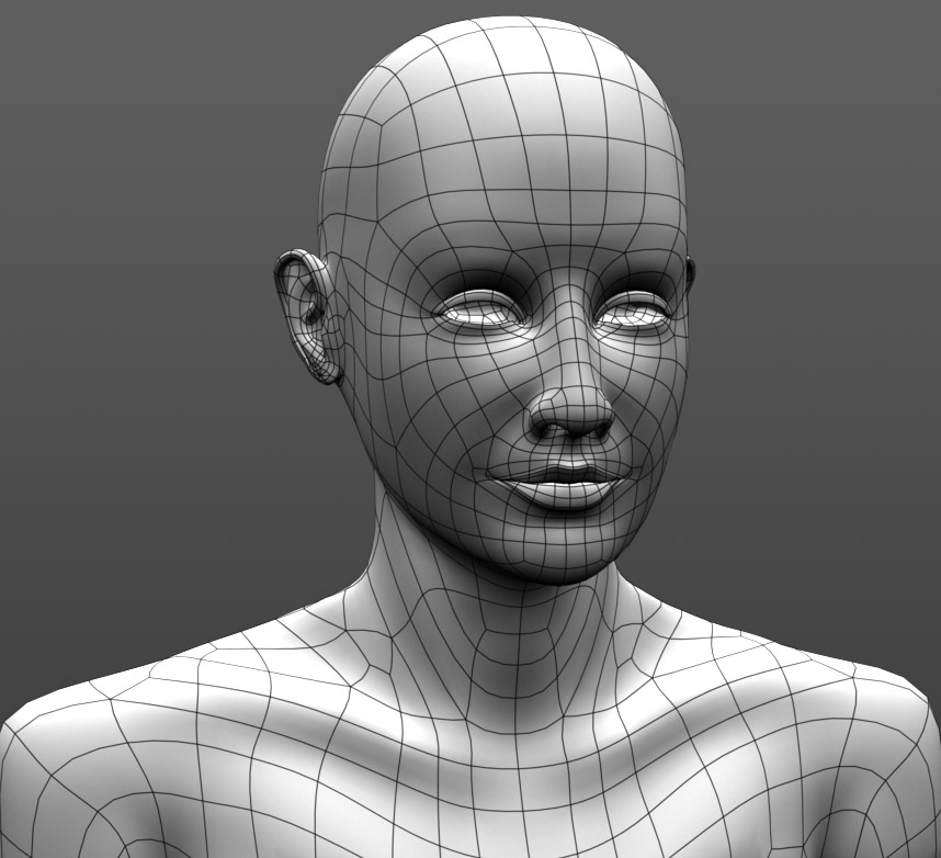 So to create the hair, I brought the model over to 3ds Max. LightWave has excellent hair rendering options, but can be a bit tedious to use for styling long hair guides. Even though LightWave has improved a lot in this area the last year and in 9.6 it’s starting to get there, it’s still not as artist friendly as you can find in some other applications. I am sure LightWave will get there with the next update, but for the time being I prefer to style my guides when creating long hair outside of LightWave, and in this case I choose 3ds Max.