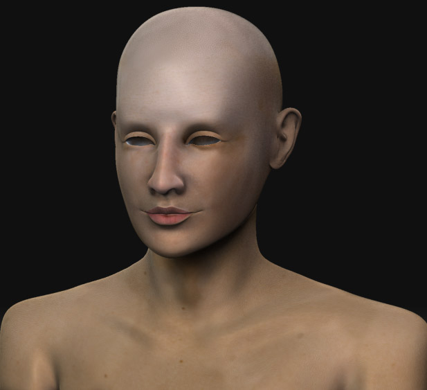 I didn’t really spend any time modeling any accessories for her, other than the quite basic clothing and ear ring, as the purpose of this project was skin and hair. Well, that was pretty much the complete process to bring her from a left over model to a completed, textured character in a few evenings of spare time.